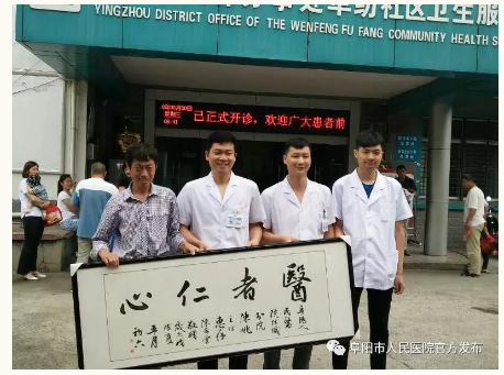 为了感谢陈姚医生的佳针妙手,陈奶奶的家人们特意制作了一面“医者仁心”的牌匾,将其送到纺织分院陈姚医生手中,激动地向陈姚医生及纺织分院领导表示感谢。